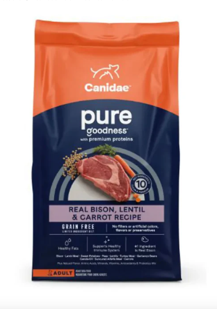 Bison Meat, Lamb Meal, Sweet Potato , peas, lentils, turkey meal, chickpeas, canola oil, dried alfalfa meal, carrots, natural flavors, choline chloride, DL-methionine, taurine, salt, mixed tocopherols (preservative), sulfuric acid Zinc, Potassium Chloride, Vitamin E Supplement, Ferrous Sulfate, Niacin, L-ascorbyl-2-polyphosphate, Calcium Pantothenate, Manganese Sulfate, Copper Sulfate, Vitamin A Supplement, Sodium Selenite, Riboflavin Supplement , thiamine, biotin, dried Lactobacillus acidophilus fermentation product, vitamin B12 supplement, protein zinc, pyridoxine hydrochloride (vitamin B6), ethylenediamine dihydroiodide, vitamin D3 supplement, folic acid, cheese milk Bacillus fermentation products, Lactobacillus plantarum fermentation products.